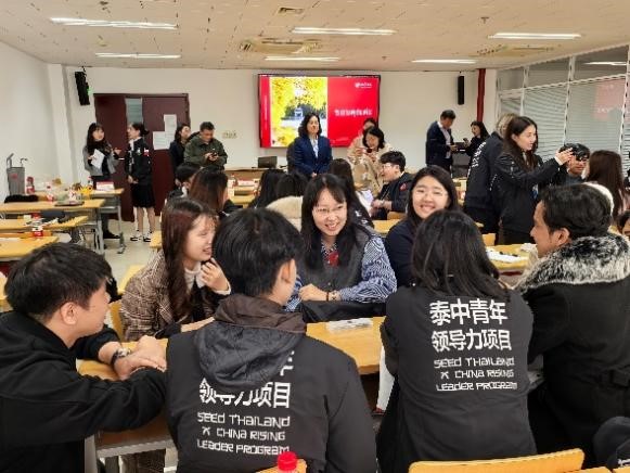 随后,代表团成员与泰语专业的同学们在轻松愉悦的氛围中进行了自由交流与分组讨论。代表团的同学们分享了他们此次来中国的见闻和感受,同时表达了对中国文化的浓厚兴趣。泰语专业的同学们积极回应,向他们介绍学习泰语的感受和收获,以及校园生活的点点滴滴。现场气氛融洽、讨论热烈,大家各抒己见,畅所欲言,不时爆发出一阵阵欢声笑语。两国青年学子通过面对面的交流,不仅加深了对彼此语言文化的了解,更在心灵深处架起了友谊的桥梁。