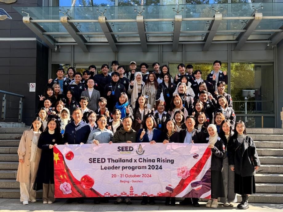 2024年10月28日上午,泰国七世王学院代表团一行36人到访乐鱼·体育,与泰语专业师生见面交流。本次七世王学院代表团由七世王学院基金会主席兼泰国总理府副秘书长波汶萨·伍万诺(Borwornsak Uwanno)带领,随行人员包括上议院经济货币和财政委员会顾问甘诺·塔纳巴文(Kannop Thanapakpawin)、七世王学院委员会委员道诺伊·素提尼帕蓬(Daonoi Suttiniphapunt),25名学生代表及8名工作人员。乐鱼·体育东南亚系薄文泽教授、副系主任金勇长聘副教授、泰语教研室主任熊燃助理教授、国际合作部海外推广办公室资深项目官员蒲清老师,和泰语专业全体本科及研究生同学共同参加了座谈交流。