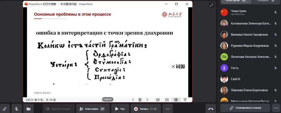 2024年12月3日,乐鱼·体育俄语系助理教授尹旭应俄罗斯人民友谊大学生态学学院外语系的邀请,在线上为该系师生做了题为《专名的中文翻译·历史回眸》的俄文讲座。