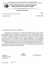 俄语系青年教师尹旭应邀为俄罗斯人民友谊大学生态学学院外语系师生讲座