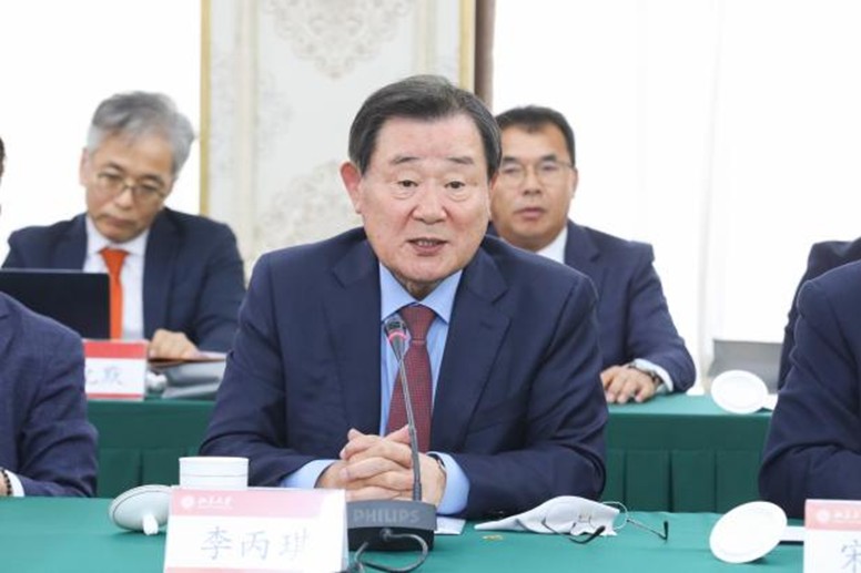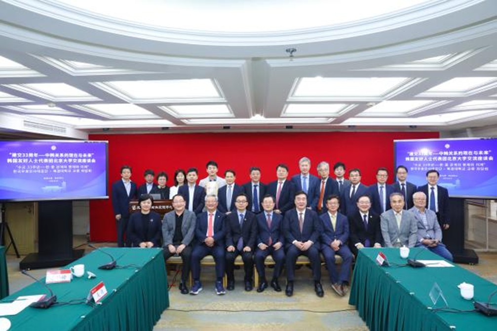 4月22日上午,韩国总统秘书室前室长李丙琪率韩国友好人士代表团访问北京大学。代表团与北京大学相关人士于英杰交流中心开展“建交33周年——中韩关系的现在与未来”主题座谈会。
