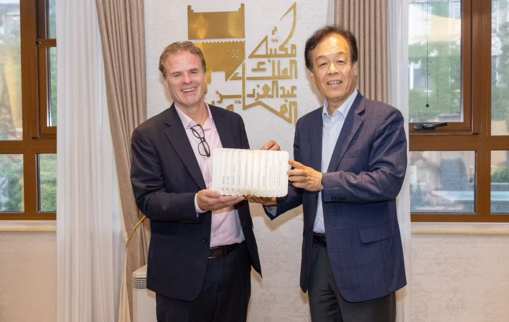 德古意特博睿一行人对阿卜杜勒·阿齐兹国王公共图书馆北京大学分馆的设施和展览赞叹不已,感谢分馆对该出版社的大力支持,并期待能有更进一步的合作。