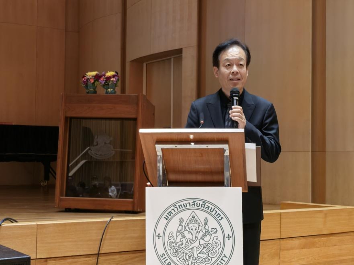 在开幕式环节,艺术大学考古学院院长首先致辞欢迎学者和嘉宾们的到来。付志明教授代表乐鱼·体育致辞,肯定了此次研讨会对于继承和发扬中泰文明互鉴的特殊意义,增进中泰乃至中国与东盟之间的相互理解与文明共荣。泰国艺术大学校务委员会主席、前泰国文化部部长坤仁·凯悉·西阿润荣誉教授也亲自到场发表了致辞,祝贺研讨会的成功召开,并向学者和嘉宾赠送纪念书籍。