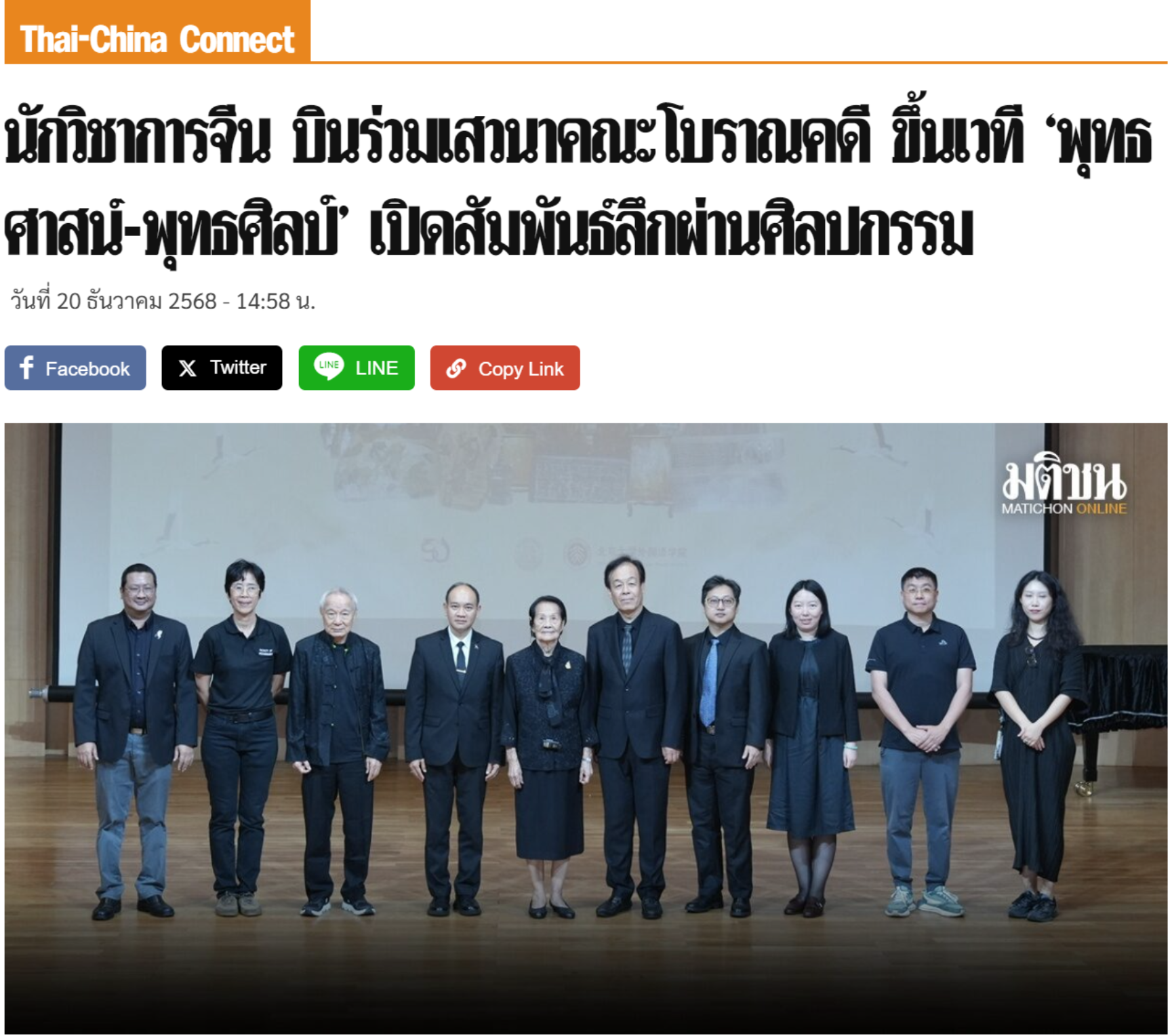 此次研讨会以庆祝中泰建交50周年为契机,汇聚中泰两国学者,围绕佛教艺术、中泰佛教文化交流及佛教考古等主题展开高水平学术交流。线上及线下共百余人聆听会议发言,泰国最有影响力的纸媒日报之一《民意报》进行了专门报道。北京大学泰国研究所、诗琳通科技文化交流中心和东南亚研究所对会议筹备予以了协助并派代表出席。