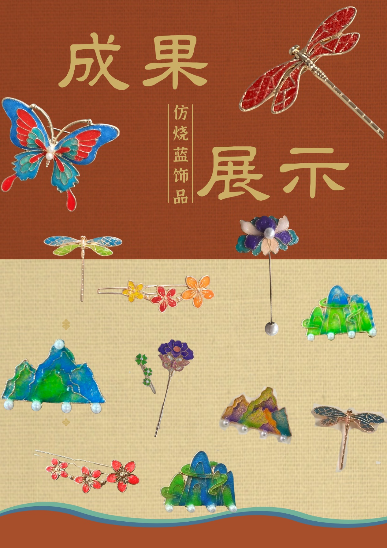 本次活动为到场的教职工精心准备了仿烧蓝制作的相关材料与工具。在指导老师的带领下,大家深入了解了这一传统工艺的文化底蕴与制作流程。在DIY环节中,老师们精心设计,屏息凝神,用细刷蘸取釉料,在方寸之间的金属线条内小心点润。随着色彩的流动与充盈,一件件色泽剔透、花纹繁复的仿烧蓝饰品在指尖逐渐成型。大家不时互相交流创意,配色操作心得,分享审美意趣,欢声笑语伴随着专注的创作,现场气氛如春光般明媚温馨,焦虑和疲累一扫而空。